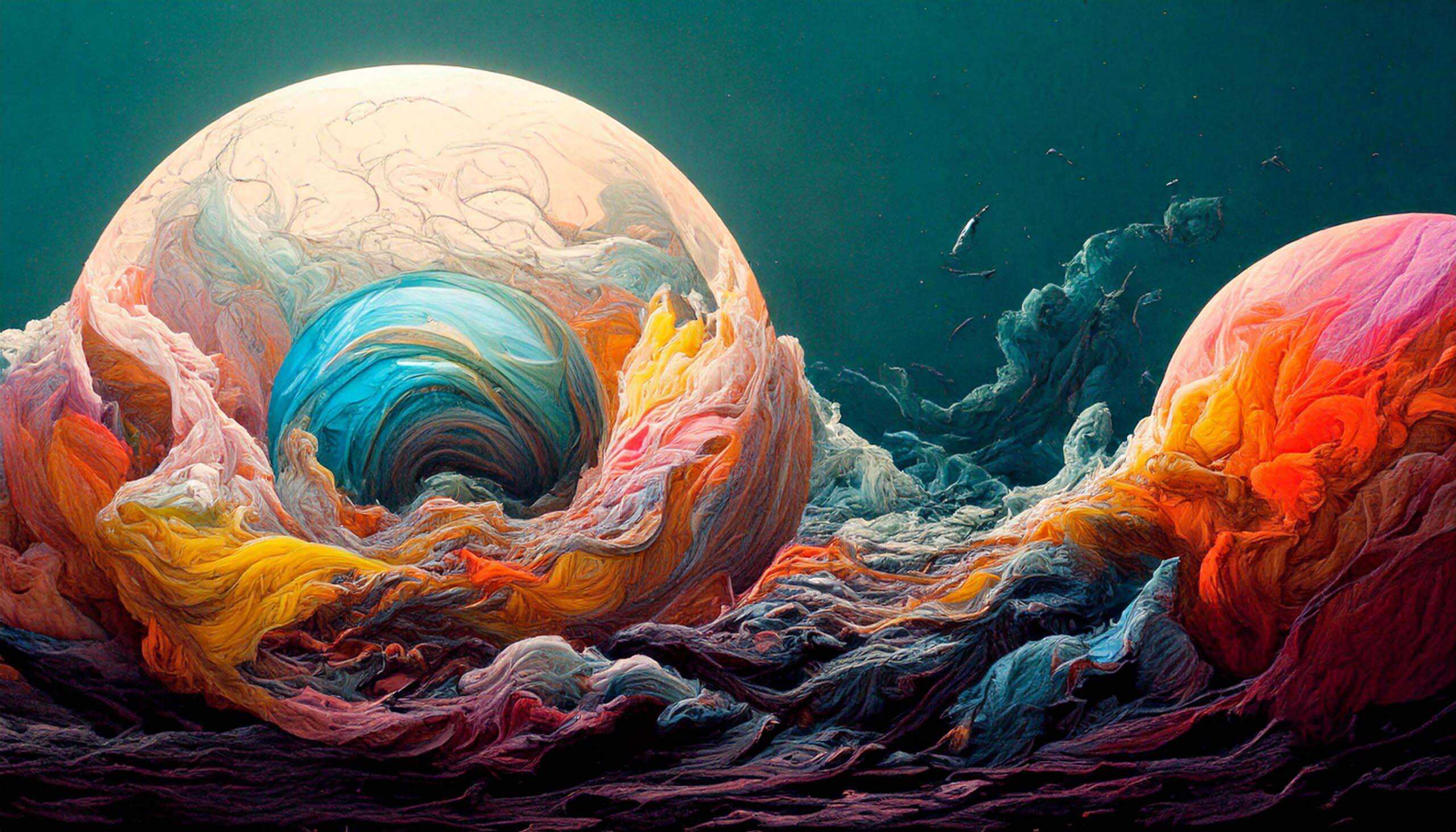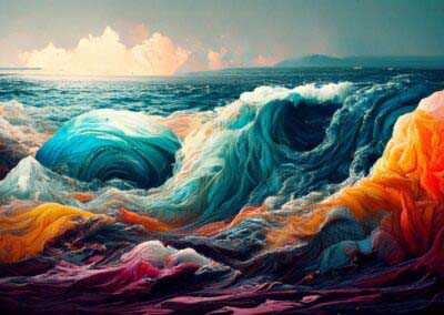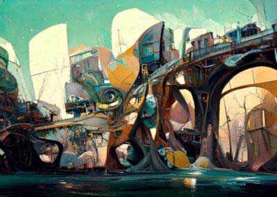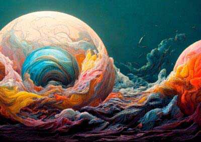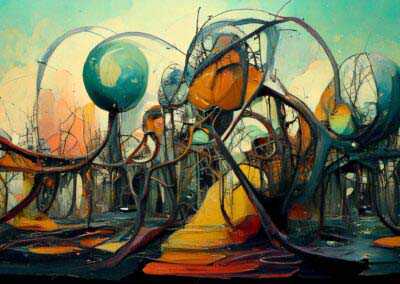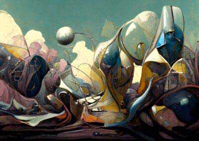 My current goal is to explore creative ways of using AI to create unusual, strange, surreal images and push AI to the limits. Here, I’m not aiming for photographic perfection, rather, artful creativity and playful impossibilities – the abstract, fantastical, weird, wonderful, otherworldly, impossible and conceptual.