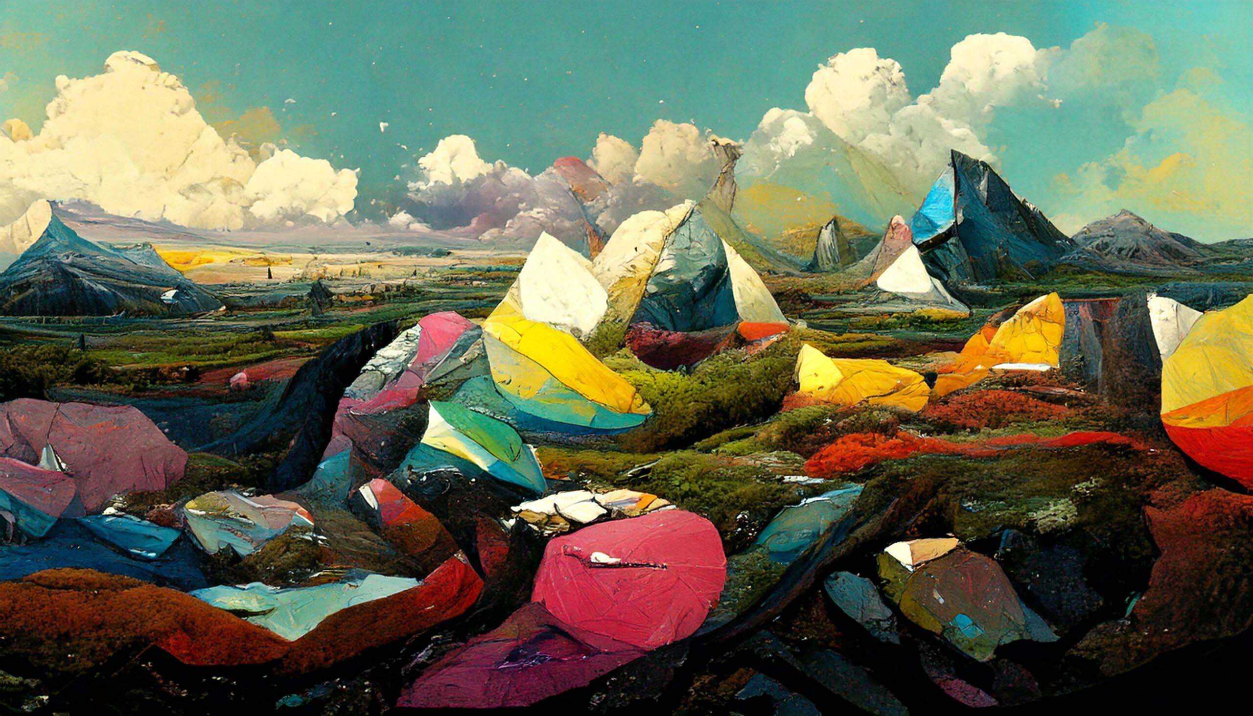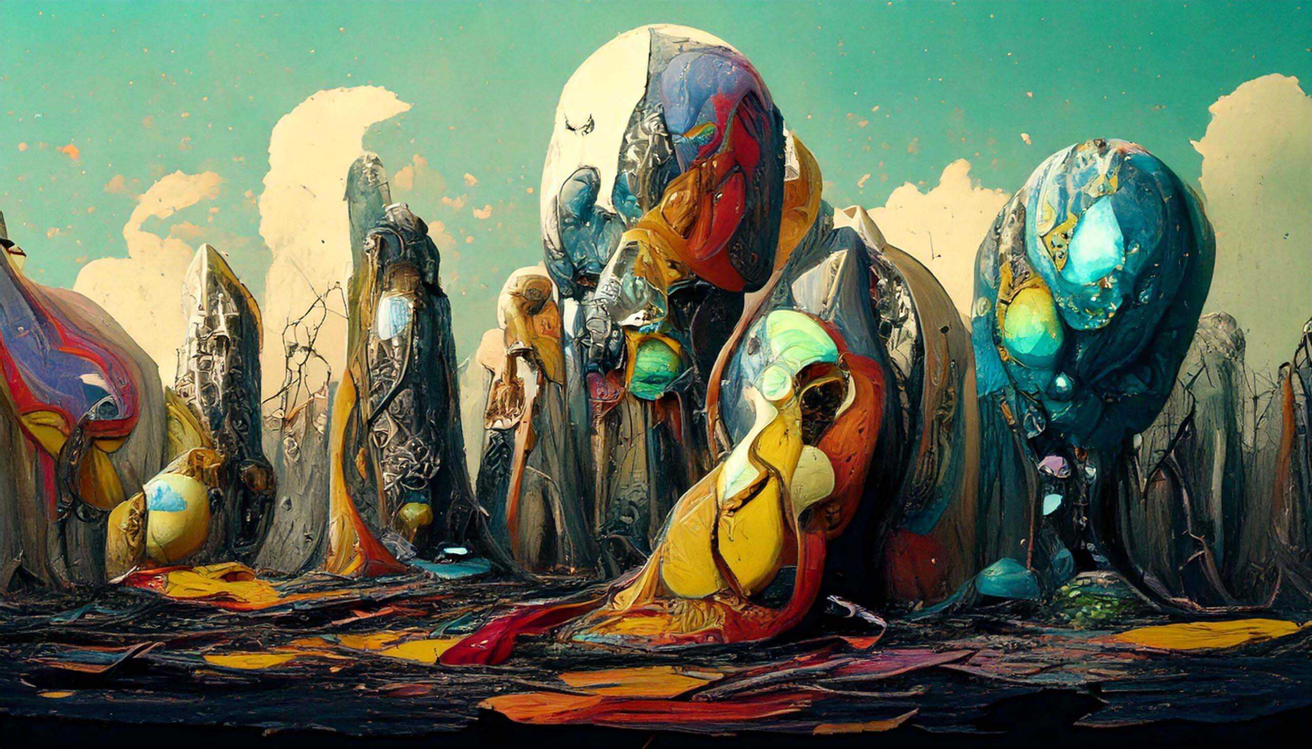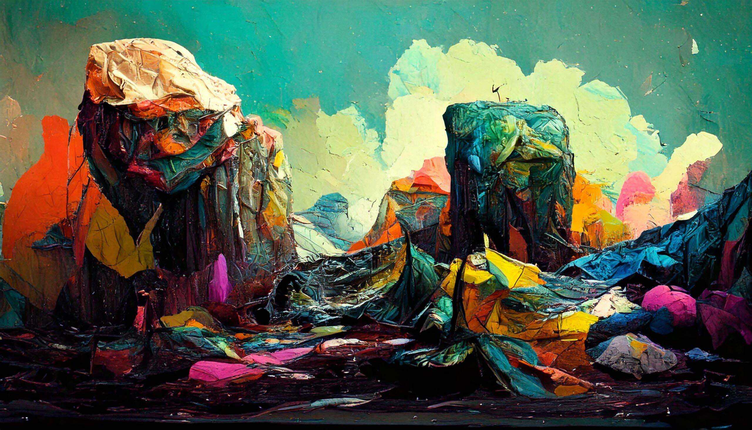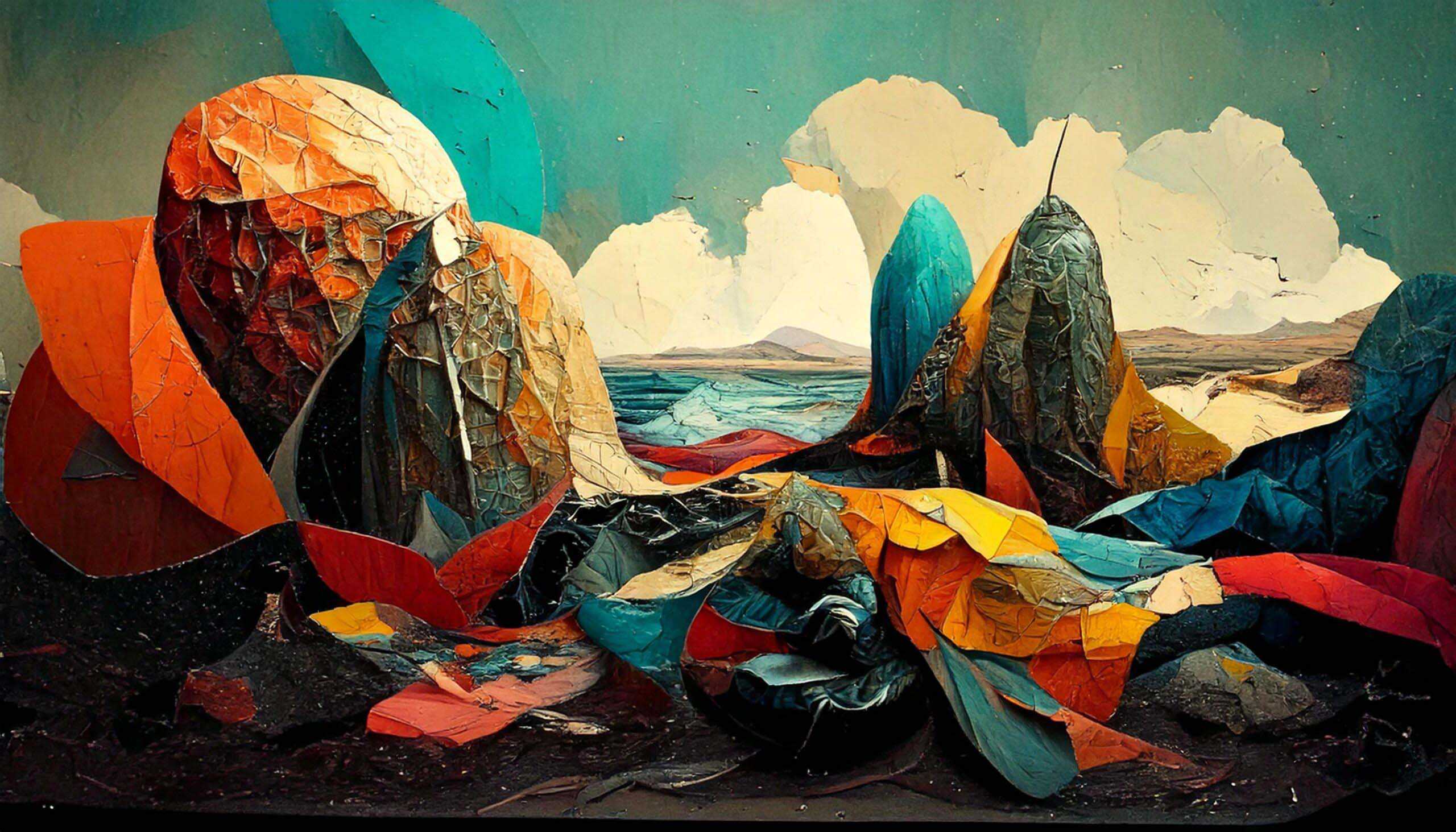 A wide range of AI generated paintings in different styles, subjects and mixed media.