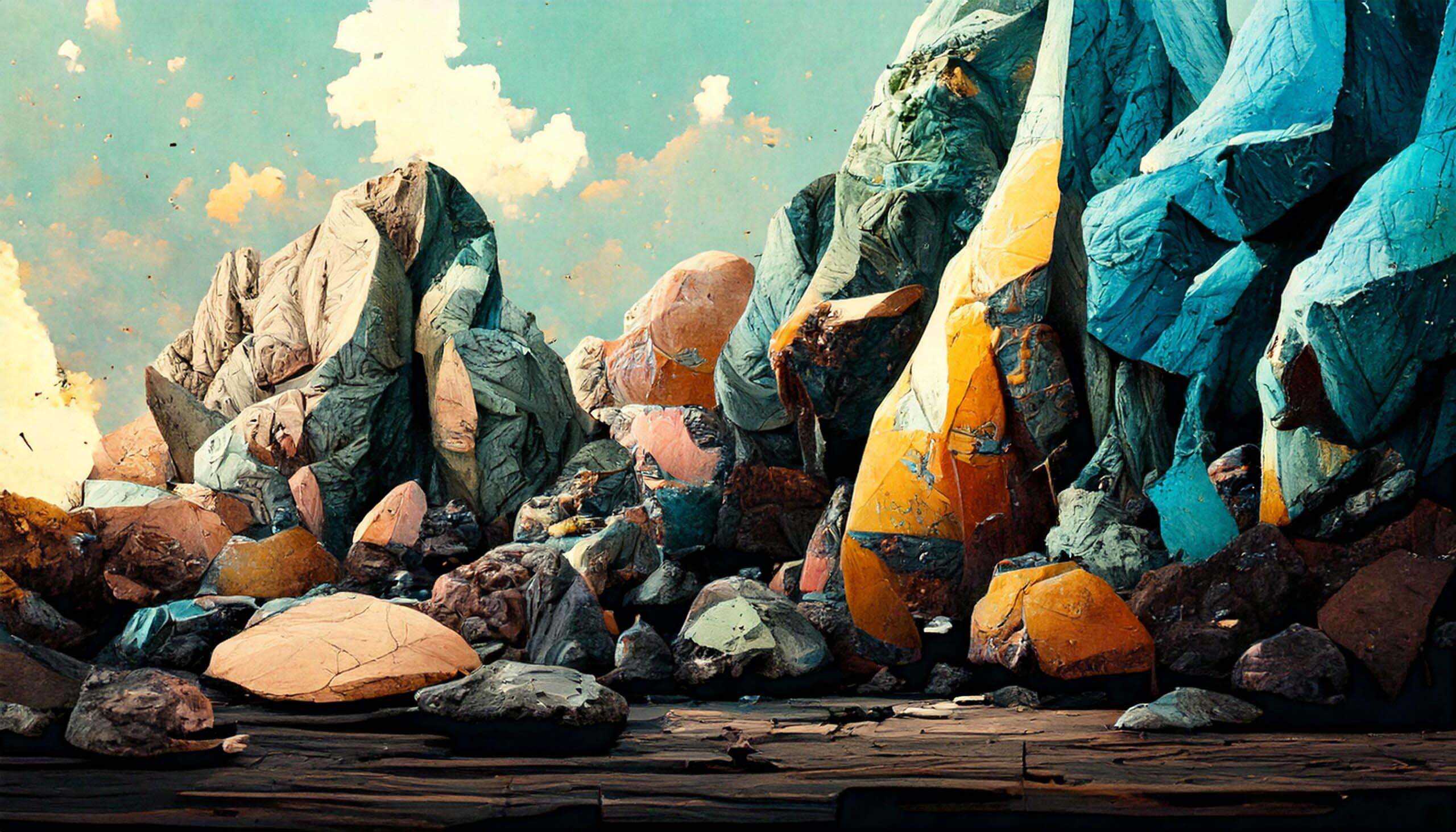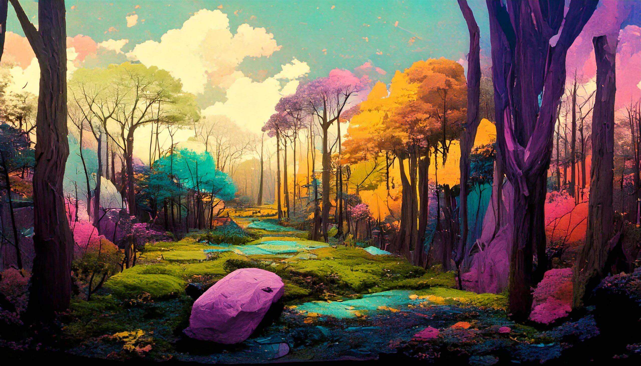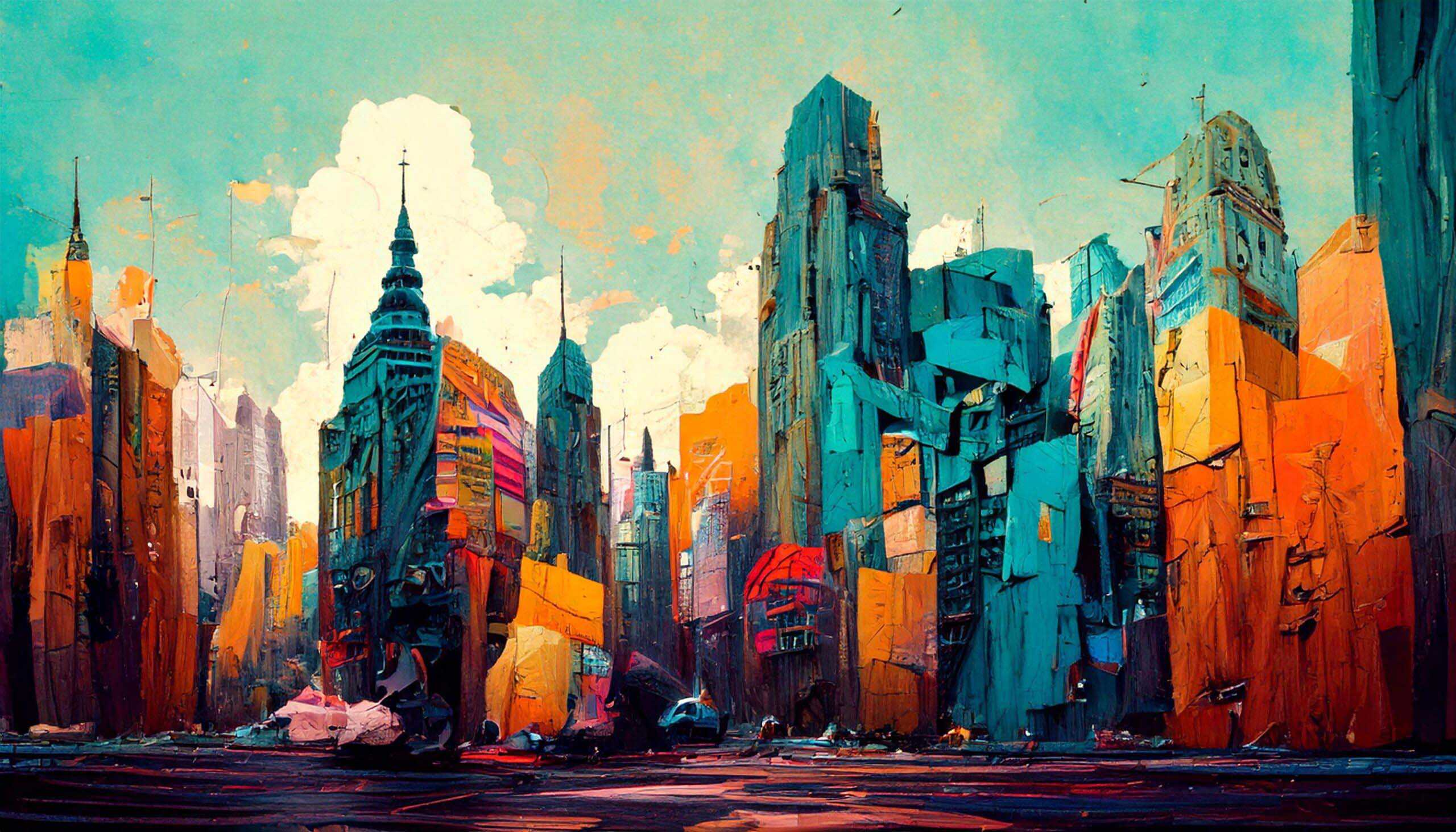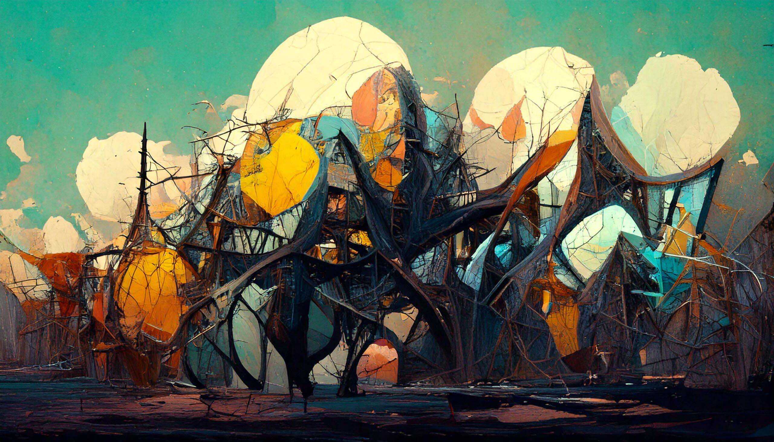 A wide range of AI generated paintings in different styles, subjects and mixed media.